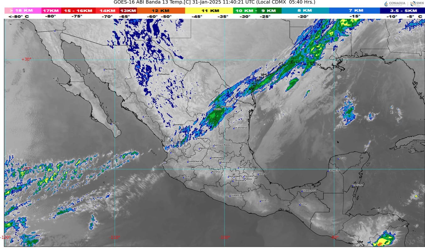 La masa de aire polar que impulsa al frente, generará evento de “Norte” muy fuerte en el litoral de Veracruz, istmo y golfo de Tehuantepec; y fuerte en costas de Tamaulipas y Tabasco; a su vez, dicha masa mantendrá el ambiente frío a muy frío durante esta mañana en estados del noroeste y norte del país, llegando a ser gélido en sierras de Sonora, Chihuahua y Durango.